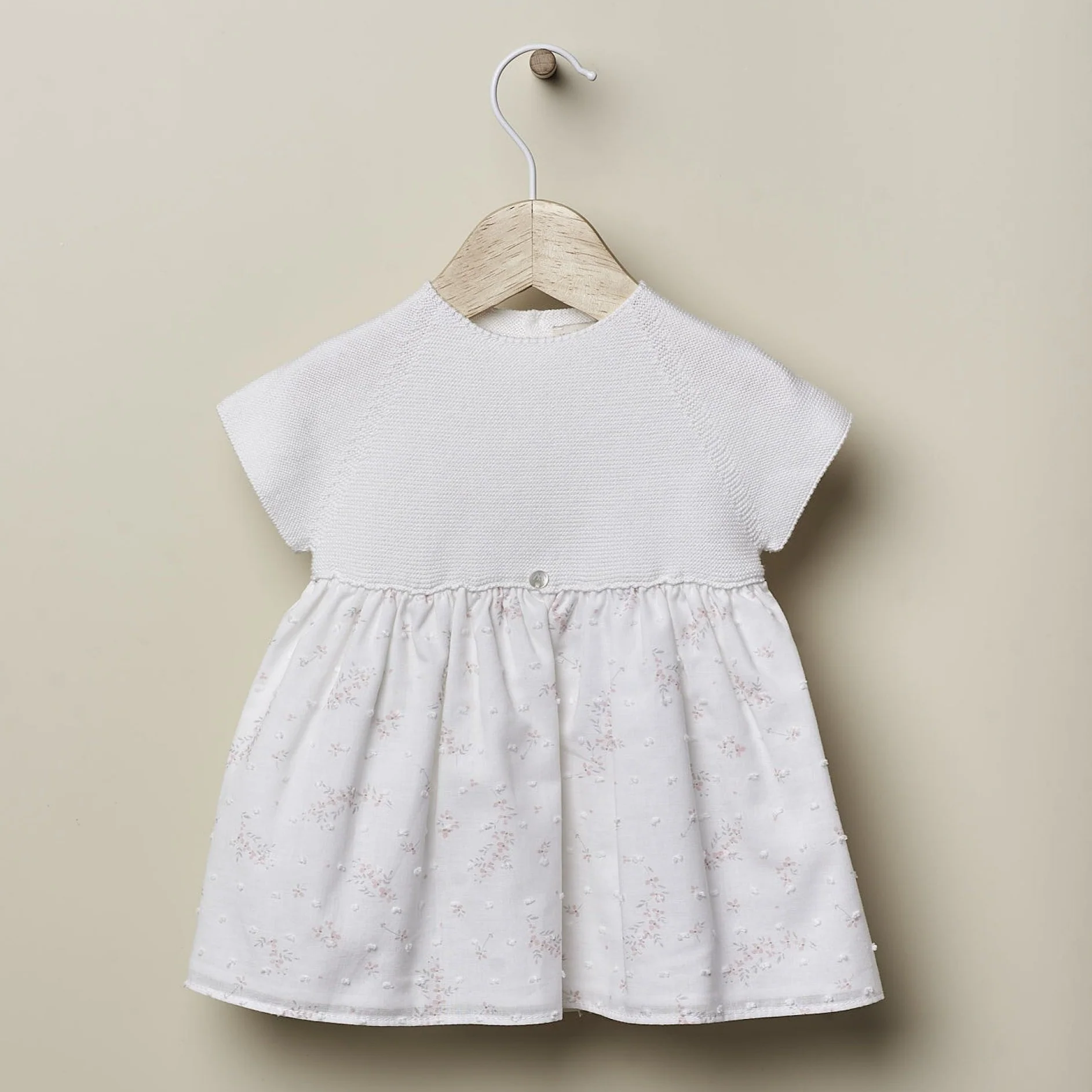 Abito in maglia e cotone per bambini BIANCO FIORI ROSA