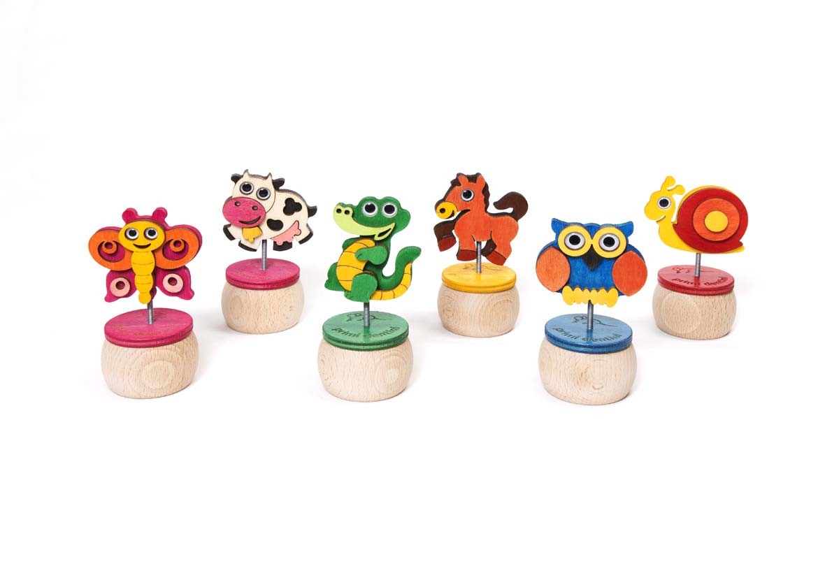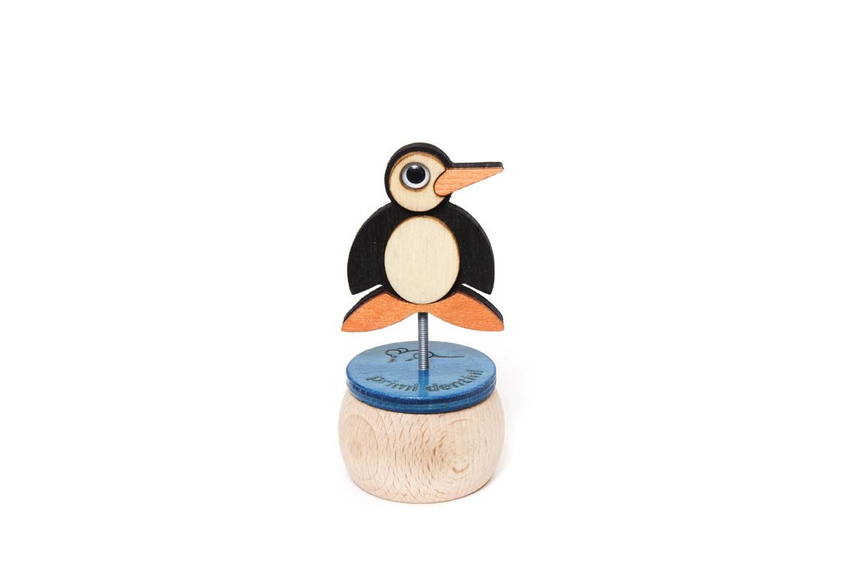 Gli allegri porta dentini in legno sono piccoli contenitori cilindrici per conservare i primi dentini dei nostri bambini. L’animale colorato sul tappo è un prezioso custode ina ttesa della fatin o del topolino. Scegli il tuo preferito. Materiali: legni di pioppo e faggio 100% Made in Italy Fabrricati con energia solare Legni certificati Vernici atossiche