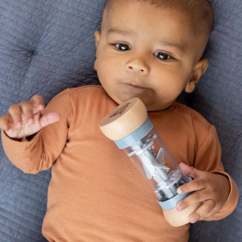 Agita e scuoti! Capovolgi il sonaglio della pioggia e le perline gocciolanti si sposteranno sull’altro lato emettendo suoni rilassanti come di gocce di pioggia. Stimolerà lo sviluppo sensoriale e il talento musicale del bambino. Le sfere in 3 diversi colori cadono lungo il tubo attraverso piccole aperture e fanno girare l’elica, producendo un suono piacevole. Il sonaglio per pioggia è progettato per le mani piccole e una presa facile. La parte superiore e inferiore sonio in legno. Dai 3 mesi