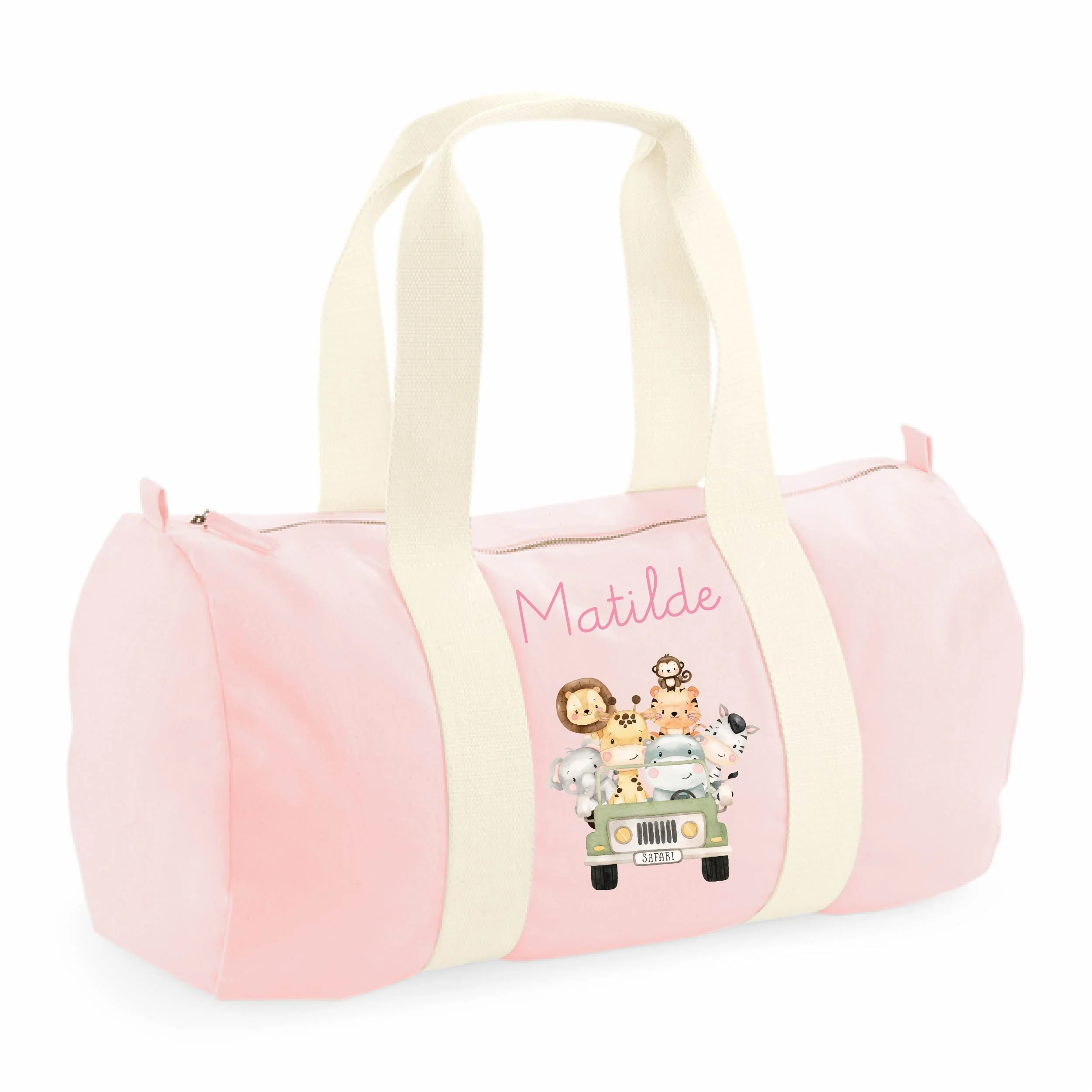 Borsone Baby in cotone stampa Safari Rosa personalizzato con nome