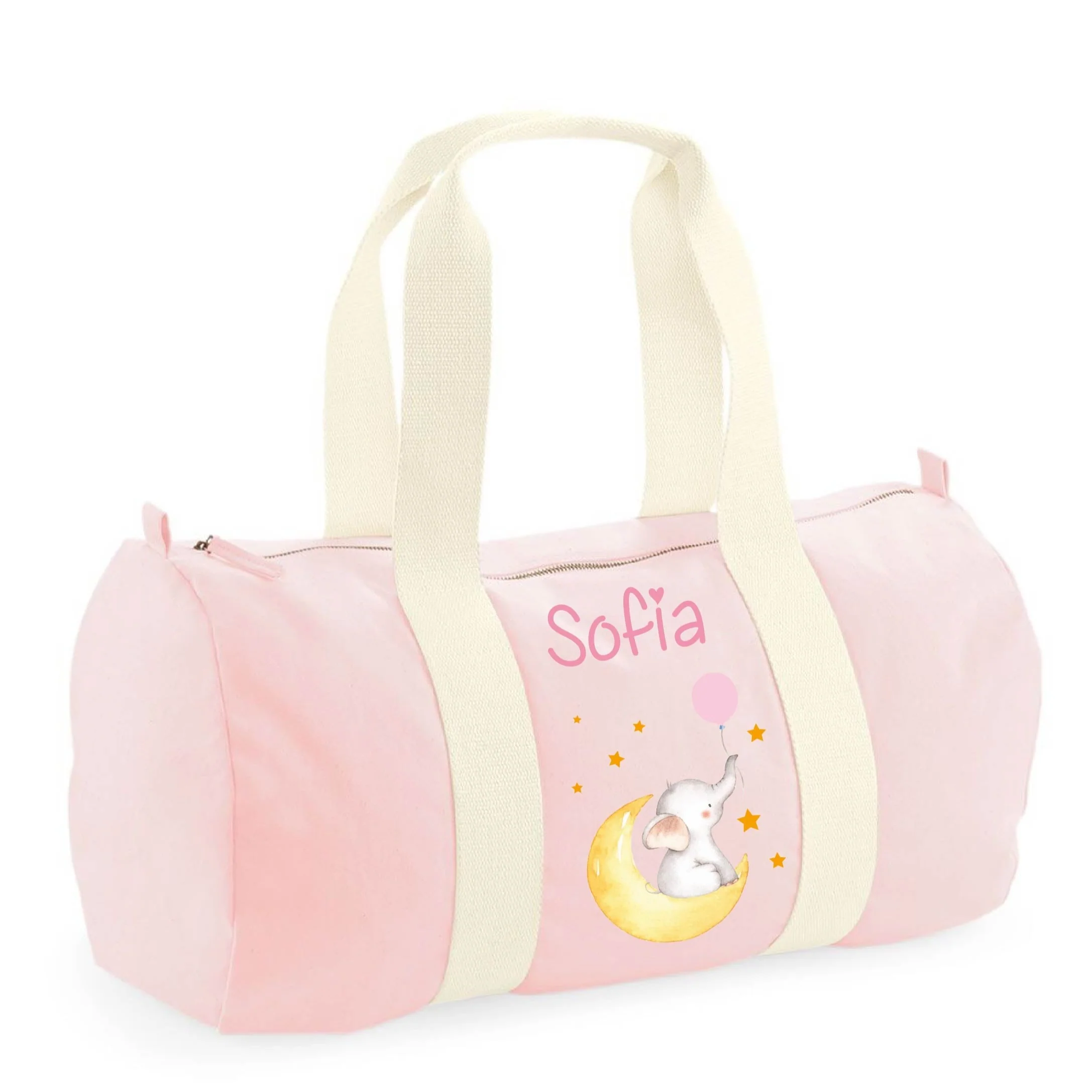 Borsone in cotone canvas personalizzato Elefantino su Luna