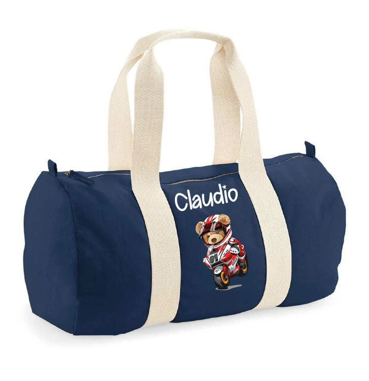 Borsone in cotone Orsetto in Moto Personalizzabile