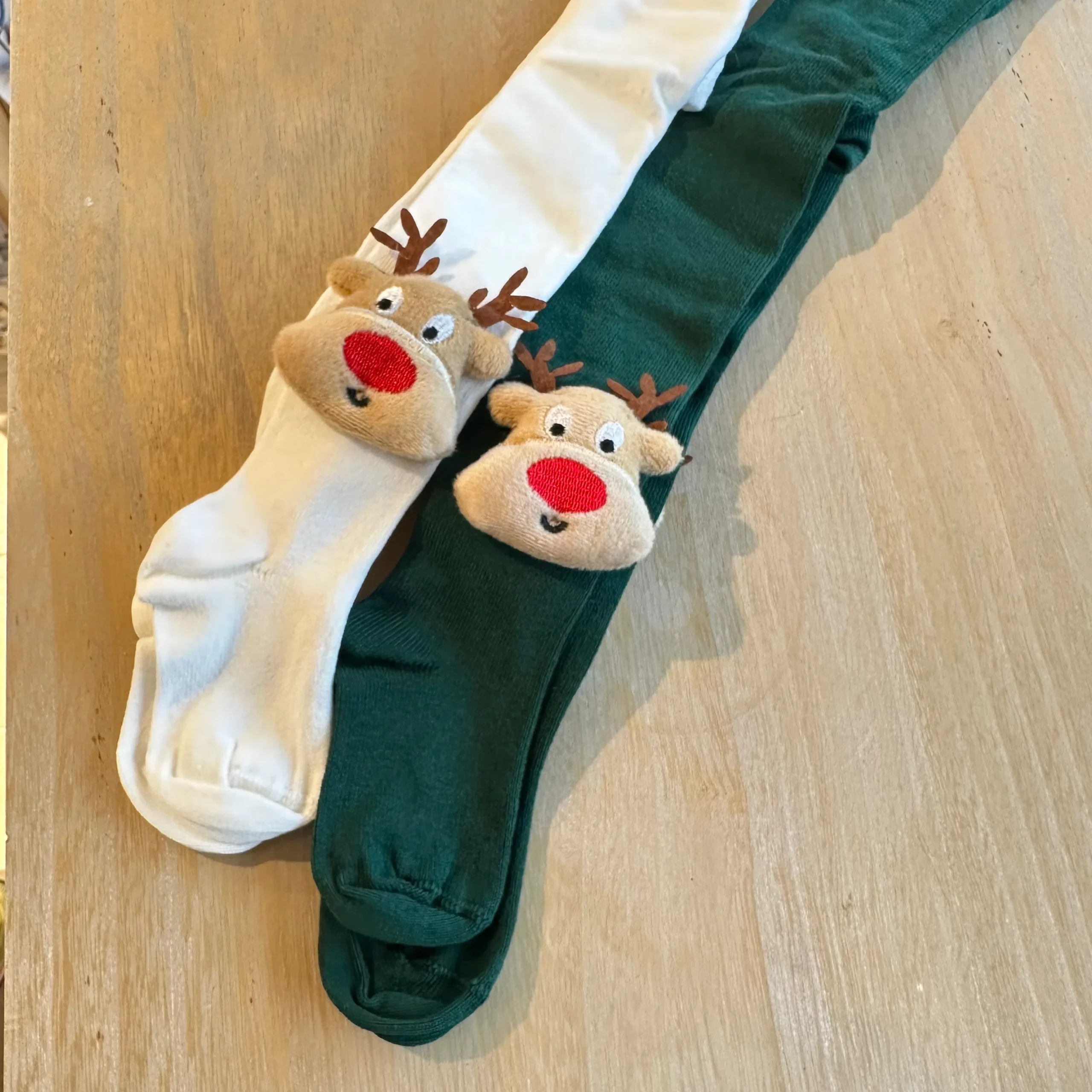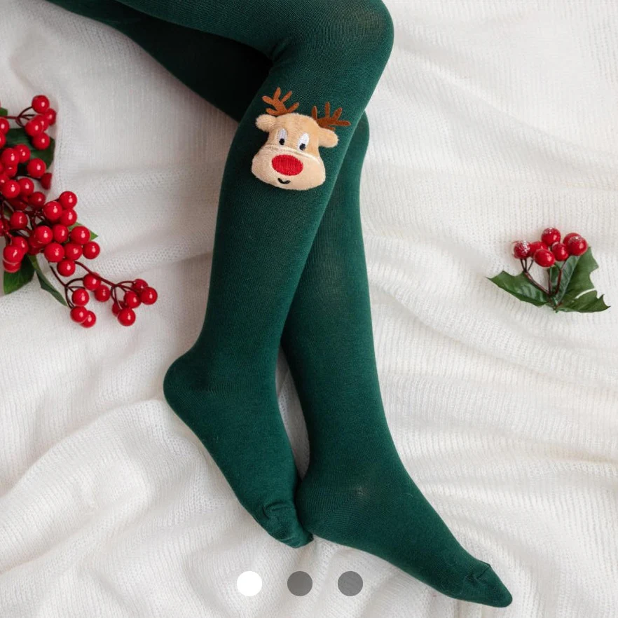 Calzamaglia per bambini con Renna Applicata su entrambi i lati disponibili in Verde Bottiglia e Panna DISPONIBILI DAL 15-17 AL 29-31 REF.2077C