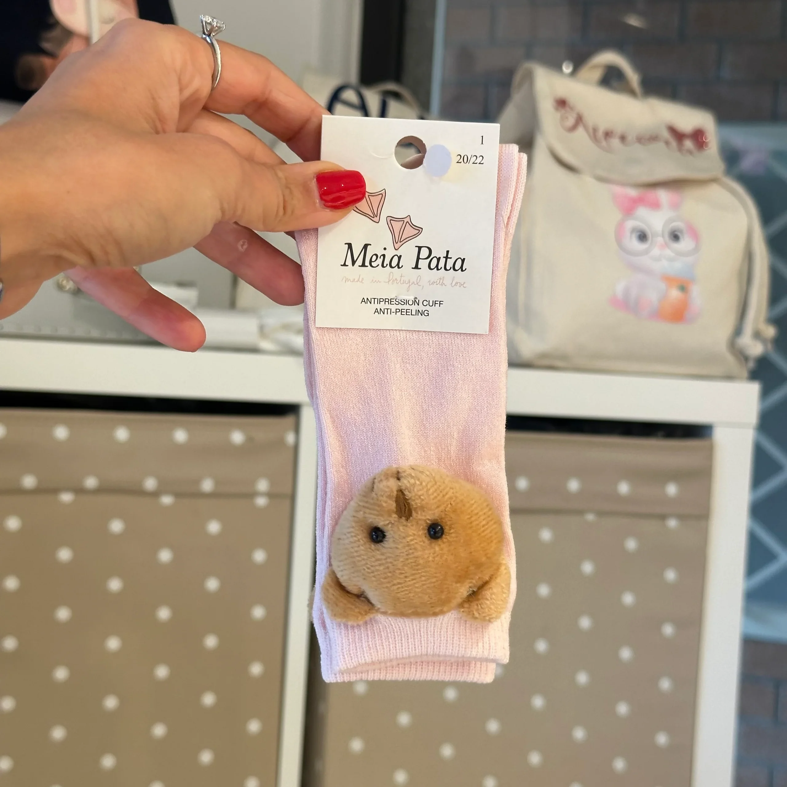 Calze bambini in cotone con orsetto Meia Pata Rosa