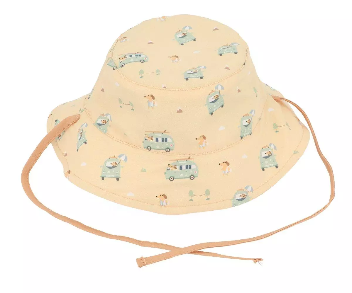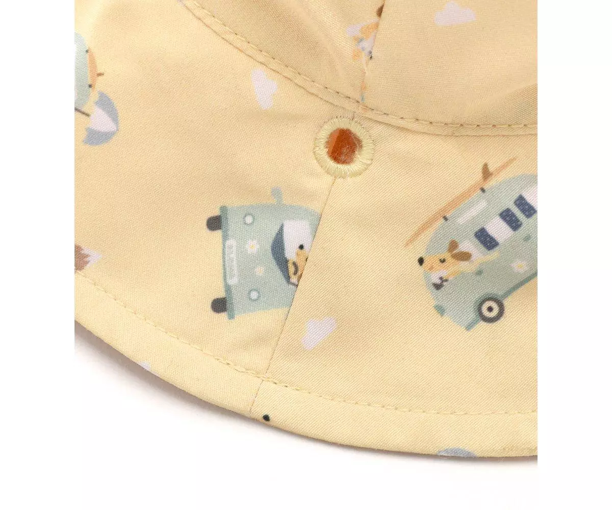 Proteggi il tuo piccolo esploratore con stile e sicurezza! Acquista ora il Cappellino Reversibile Anti UV – Giallo.