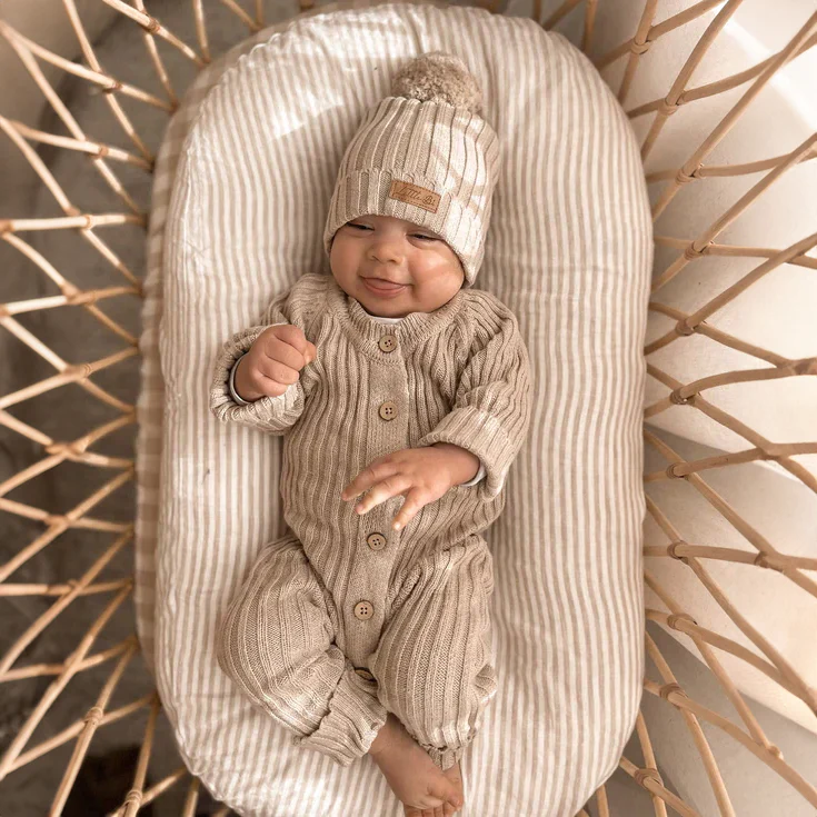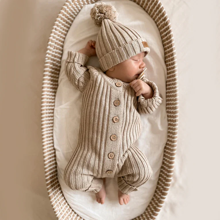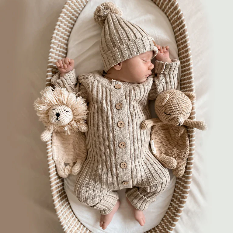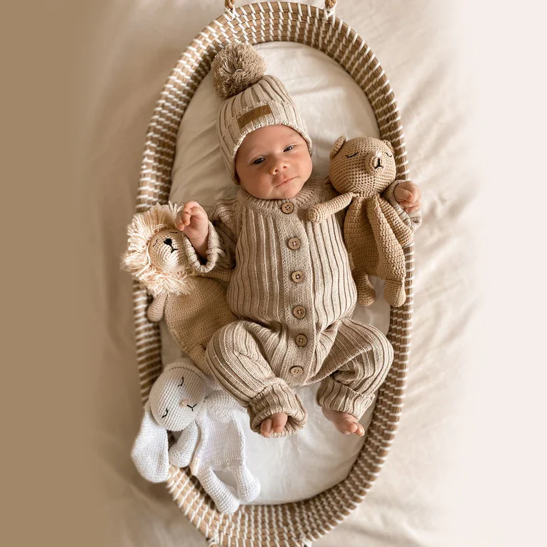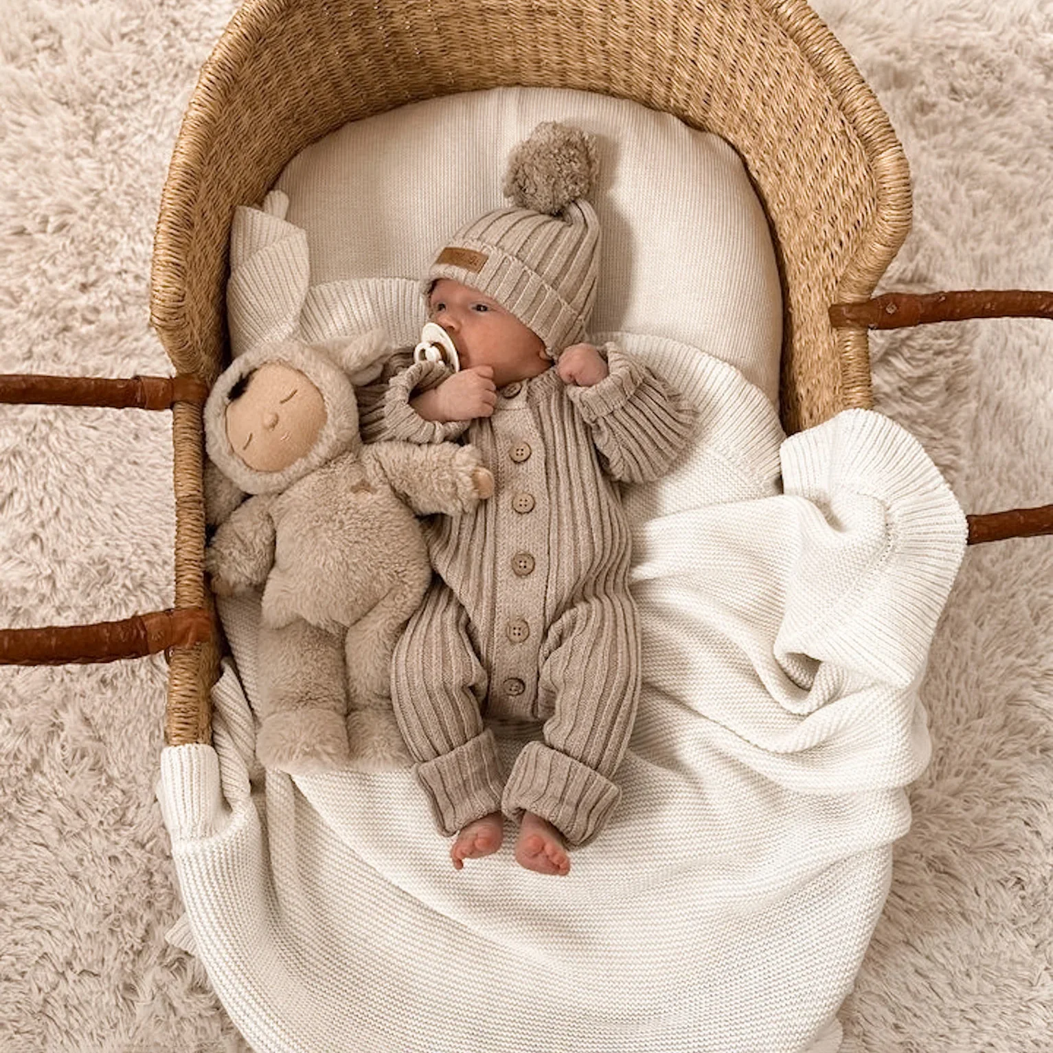 Cappello a costine realizzato in 100% cotone spesso, lussuoso ed elastico. Questo berretto neutro è il pezzo perfetto da abbinare alle nostre tutine in maglia, ideale per la primavera, l’autunno e l’inverno. 🍃 Materiale: Cotone Organico al 100% con Certificato GOTS.💧 Attenzione lavare in acqua calda e delicata con colori simili, non candeggiare 🐻 Abbinalo […]