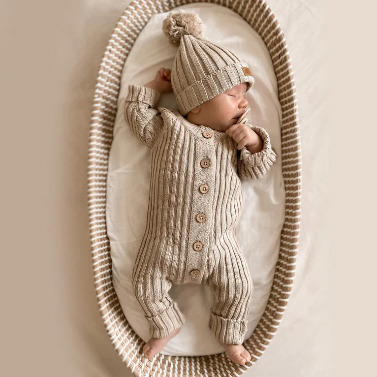Cappello a costine realizzato in 100% cotone spesso, lussuoso ed elastico. Questo berretto neutro è il pezzo perfetto da abbinare alle nostre tutine in maglia, ideale per la primavera, l’autunno e l’inverno.