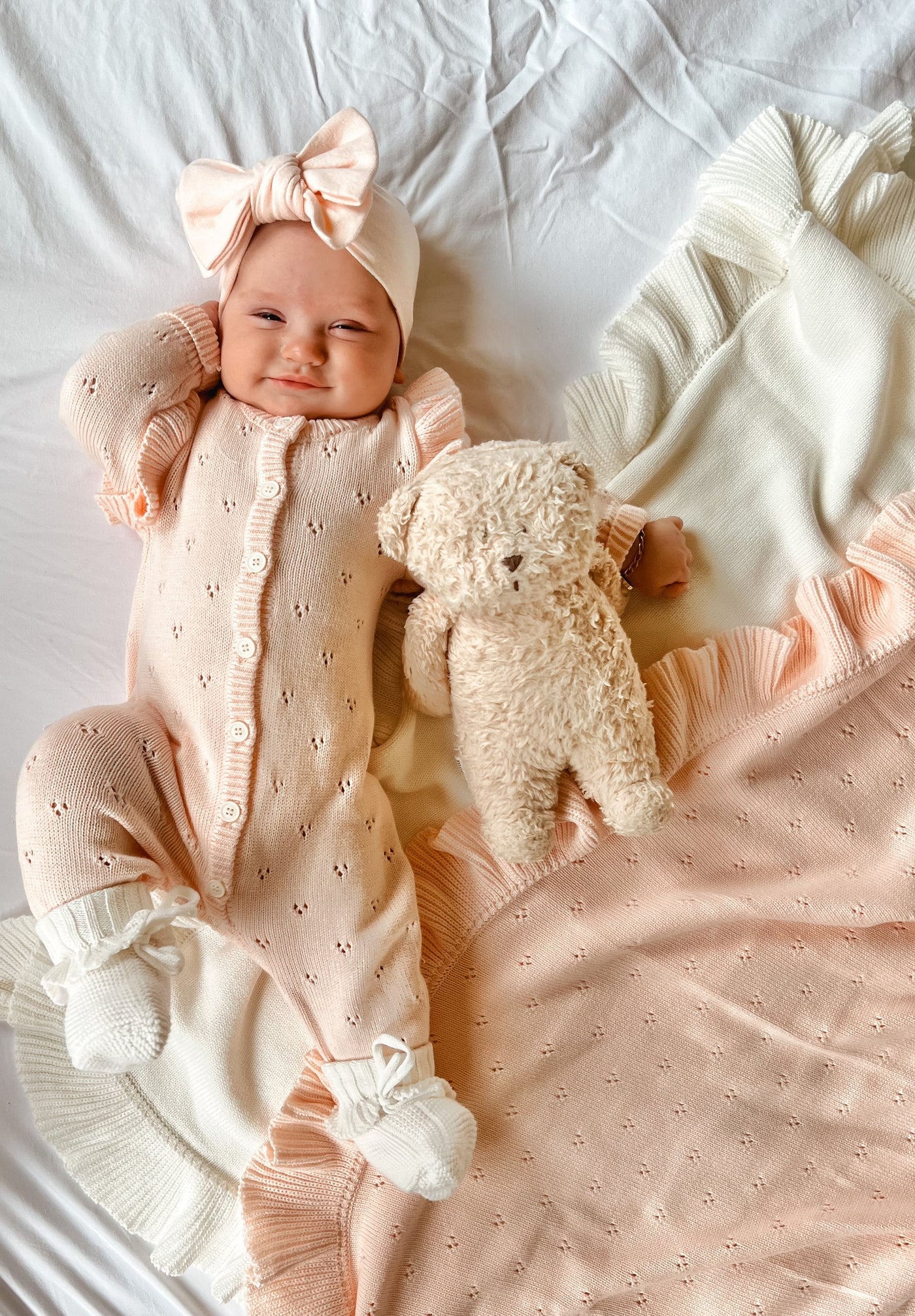 Morbida e avvolgente, la Copertina in Maglia Luna รจ realizzata in cotone di alta qualitร , ideale per coccolare il tuo bebรจ in ogni momento della giornata. La lavorazione in maglia la rende traspirante e confortevole, mentre il delicato volant sul bordo dona un tocco romantico ed elegante.