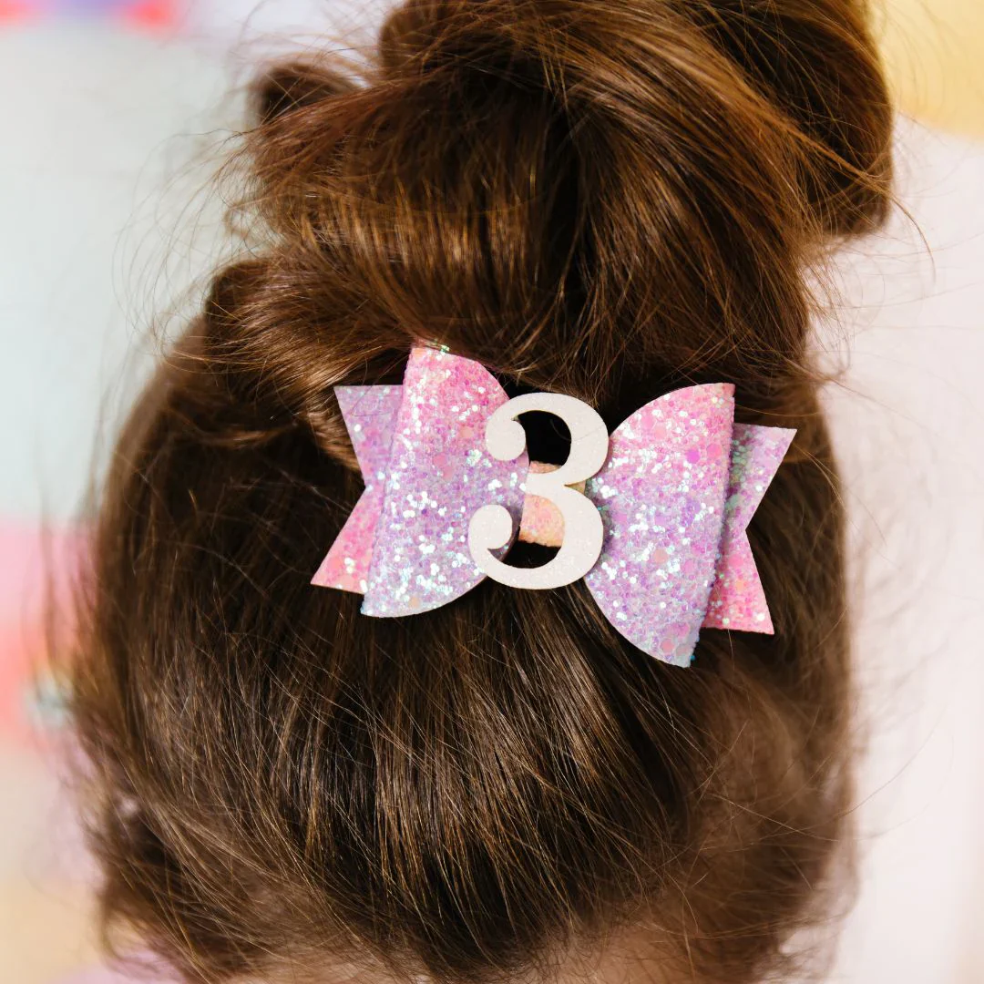 Il fermaglio per capelli con fiocco arcobaleno pastello per 3° compleanno è l’accessorio più carino per festeggiare o per far sapere a tutti che hai 3 anni tutto l’anno!Caratteristiche:Fiocco glitter arcobaleno pastelloScintillio bianco n.3