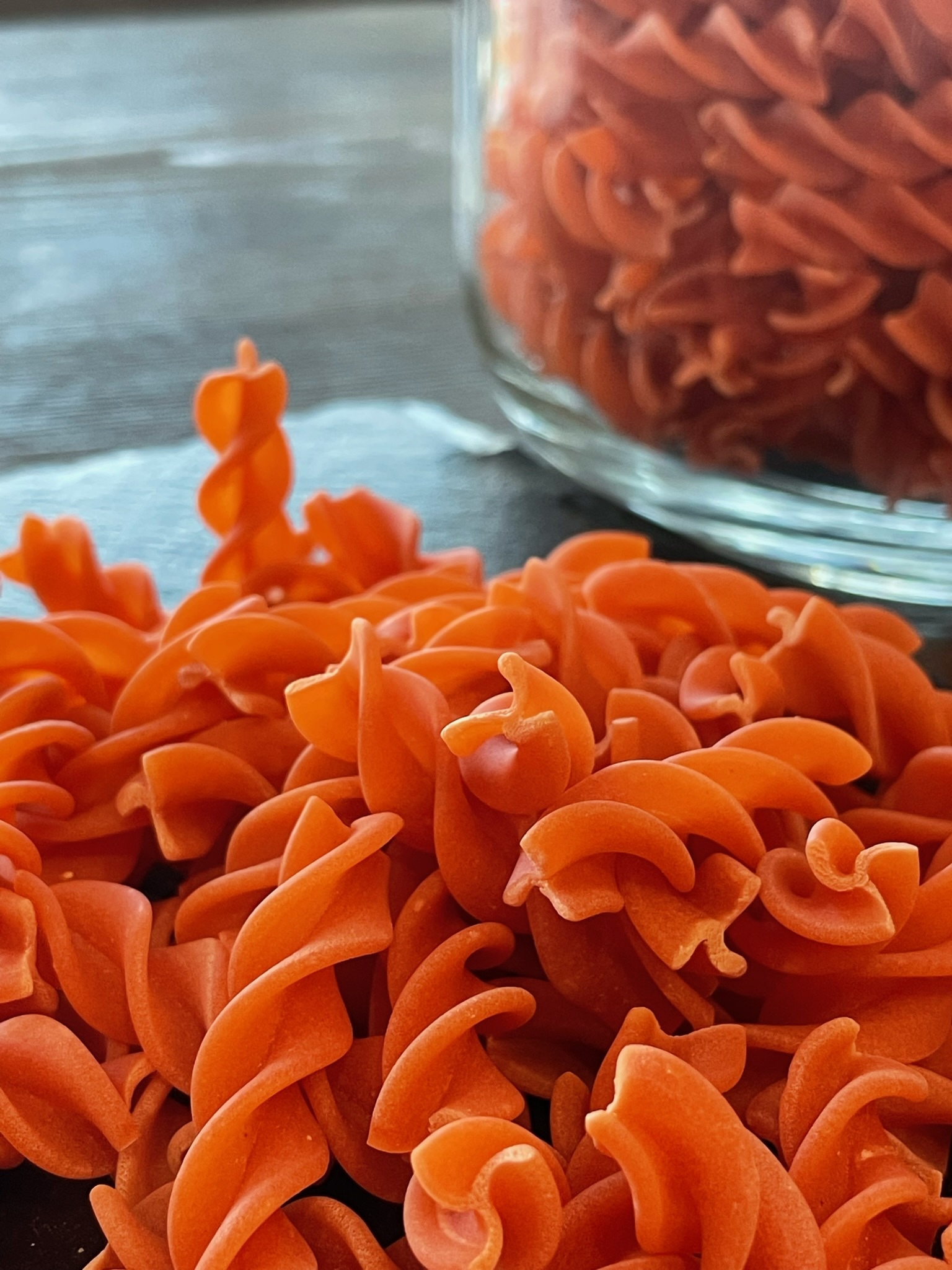 Fusilli con farina di lenticchie rosse biologiche coltivate in Italia.