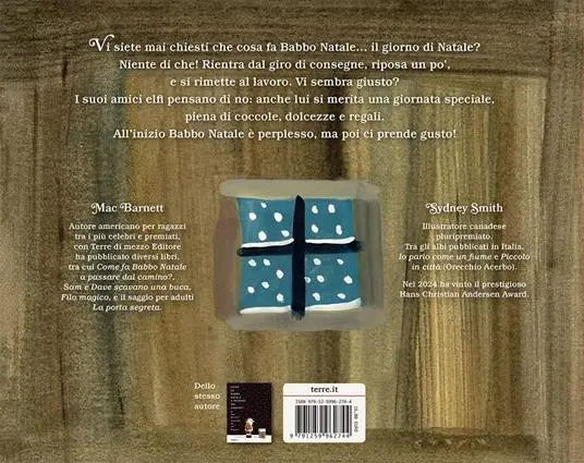 Niente di che! Rientra dal giro di consegne, riposa un po’, e si rimette al lavoro. Vi sembra giusto? I suoi amici elfi pensano di no: anche lui si merita una giornata speciale, piena di coccole, dolcezze e regali. All’inizio Babbo Natale è perplesso, ma poi ci prende gusto!