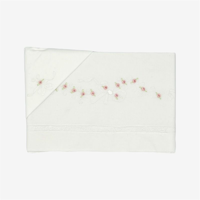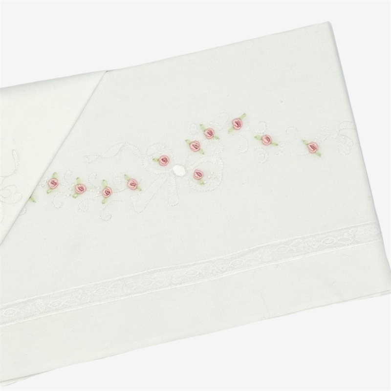 Lenzuolino ricamato a mano con roselline punto vapore