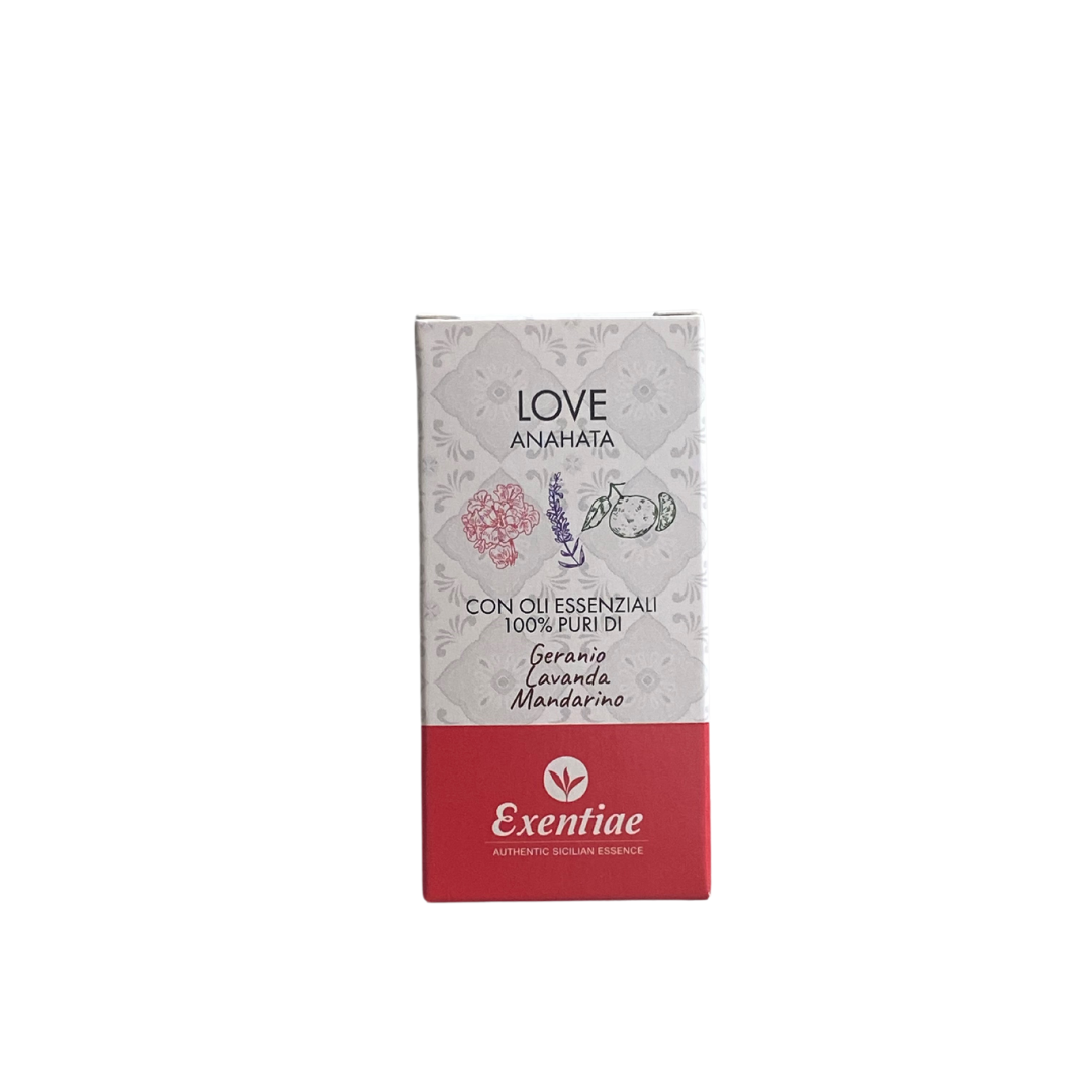 LOVE è una miscela esclusiva di oli essenziali biologici, composta da geranio, mandarino e lavanda. Ogni componente è stato accuratamente selezionato per le sue proprietà benefiche e il suo profumo avvolgente.
