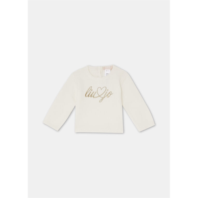 Maglia in misto viscosa, logo lurex® ricamato sul davanti, taglio girocollo con bottoni sul retro e maniche lunghe. Bordi a costine
