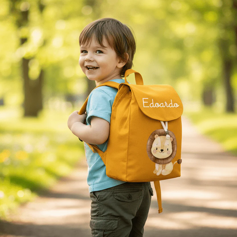 Mini Zaino asilo personalizzabile in cotone Leone Cucciolo