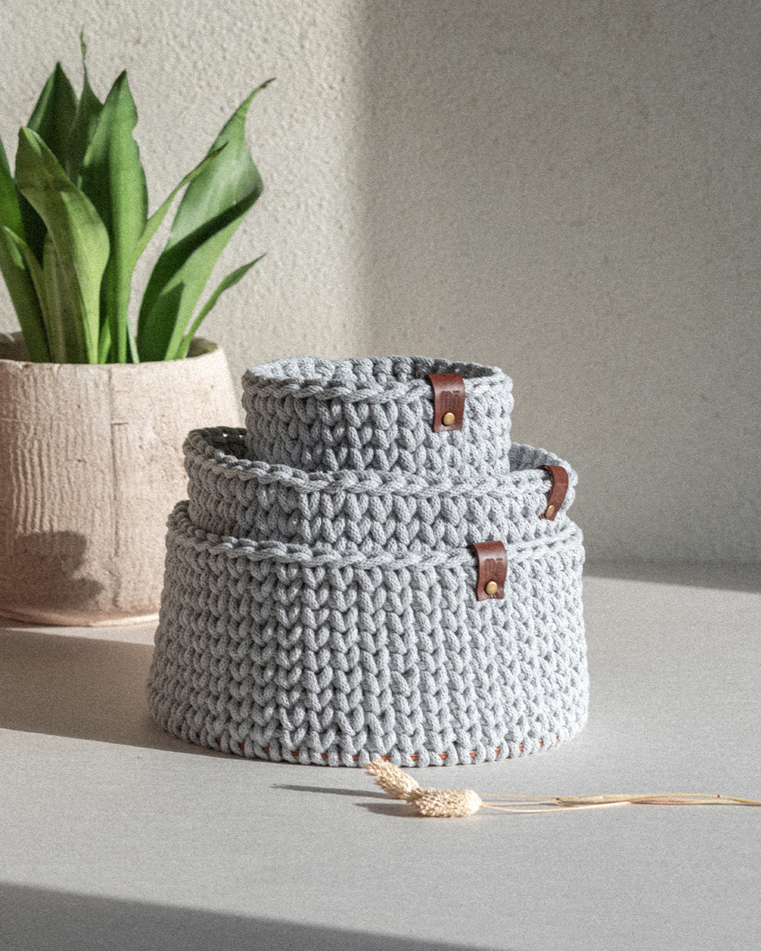 Questi cestini sono realizzati a mano utilizzando cordino in cotone riciclato certificato Oeko-tex Standard di classe1; il filato utilizzato infatti è eco-friendly: è ottenuto dagli scarti delle industrie tessili, senza l’aggiunta di acqua, sostanze chimiche tossiche, cercando di minimizzare al massimo il consumo di energia e ridurre le emissioni di CO2.