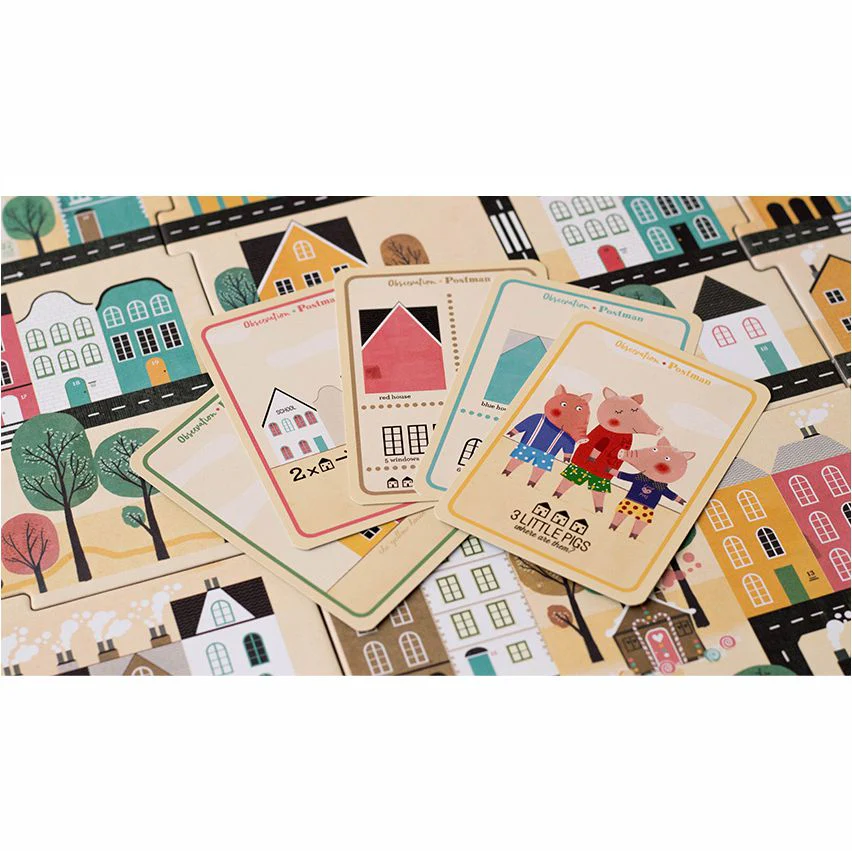 Il postino ha molto lavoro per distribuire tutte le lettere. Il giocatore più veloce nel trovare i vicini a cui appartengono le lettere, sarà il vincitore! Un gioco di osservazione per tutta la famiglia… Dai 4 anni.