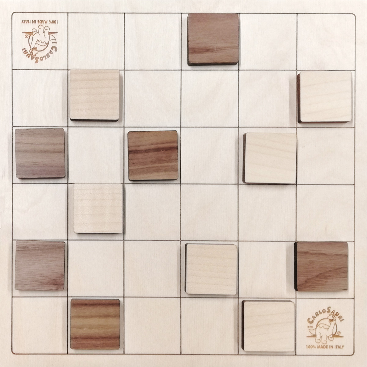Il Quadrisaurus è un gioco inventato dal Pianeta delle idee e fa parte della linea dei Carlosauri. E’ un gioco di strategia, concentrazione e dinamicità che ha conquistato moltissimi giocatori amanti dei giochi da tavolo. Più facile degli scacchi, più divertente della dama. Continui capovolgimenti di fronte danno vita ad una sfida sempre aperta. E’ infatti un gioco molto apprezzato dagli scacchisti, che hanno più volte animato la scacchiera con sfide avvincenti. L’attenzione e l’ingegno sono messi a dura prova, provare per credere. Materiali: legno di betulla REGOLAMENTO A turno i giocatori muovono una pedina del loro colore in orizzontale…
