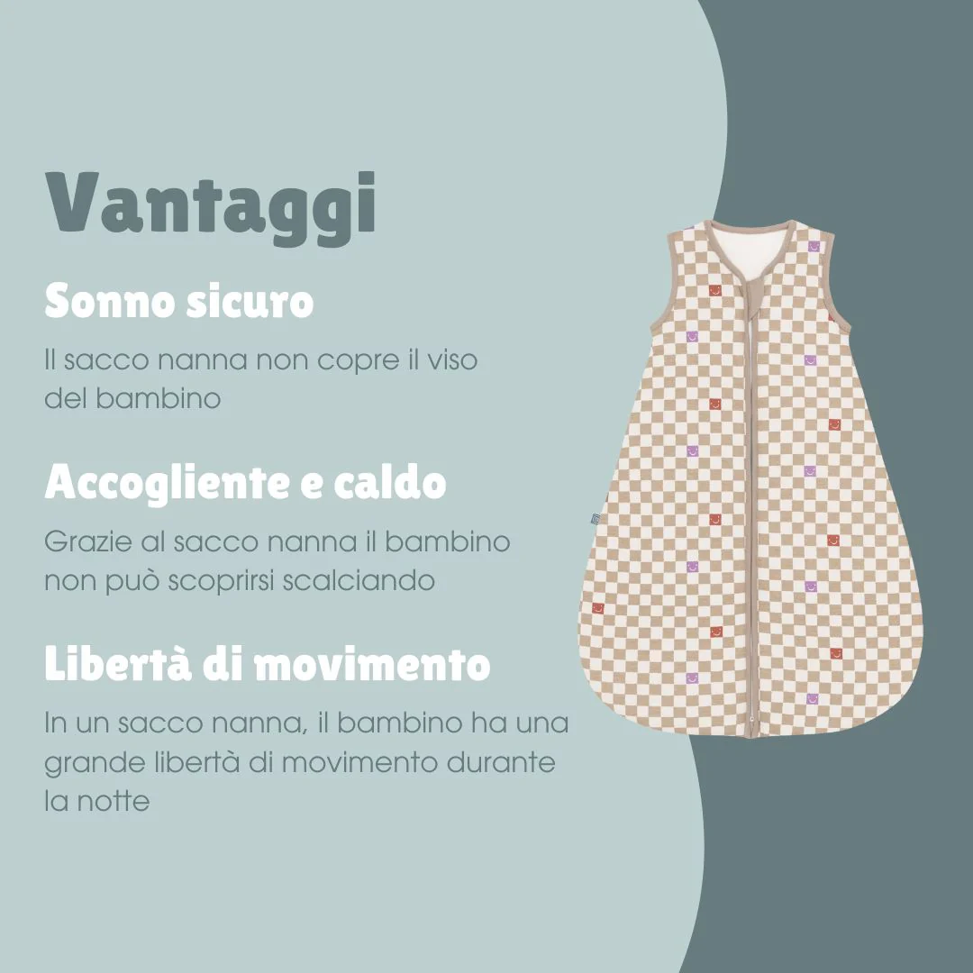 Descrizione Morbido tessuto in cotone organico per il massimo comfort Fodera leggera per un calore extra Pratica cerniera per indossare e togliere facilmente Perfetto per le notti più fredde (TOG 2.5, ideale per temperature ambiente comprese tra 16°C e 20°C) Taglio comodo per molta libertà di movimento Un sonno dolce e sicuro per il tuo […]