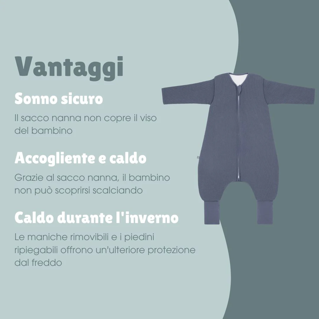 Sacco nanna con piede pieghevole e maniche 3.5 TOG | Essential Blu