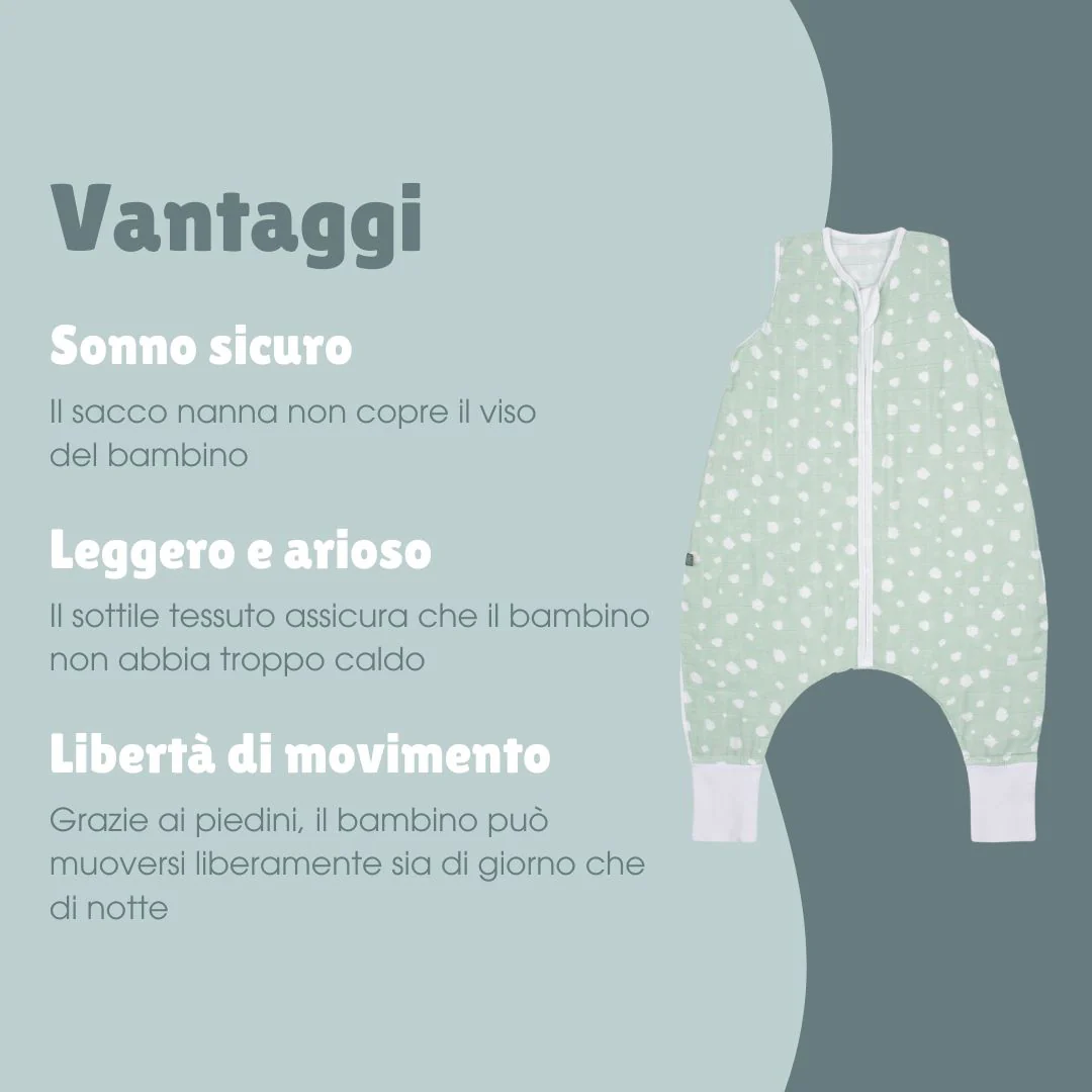 Sacco nanna in mussola con piedi 0.5 TOG | Pois Menta
