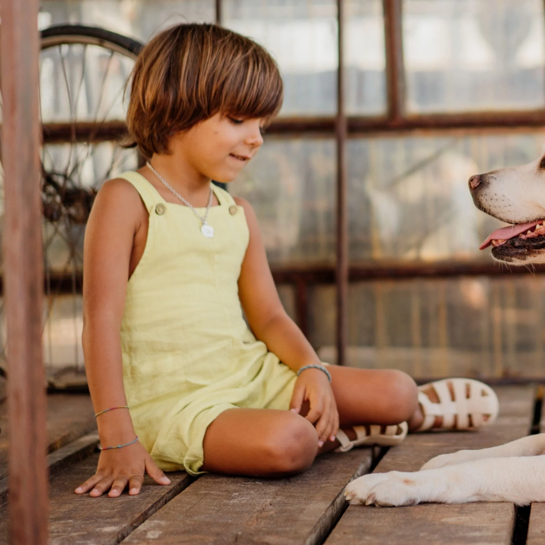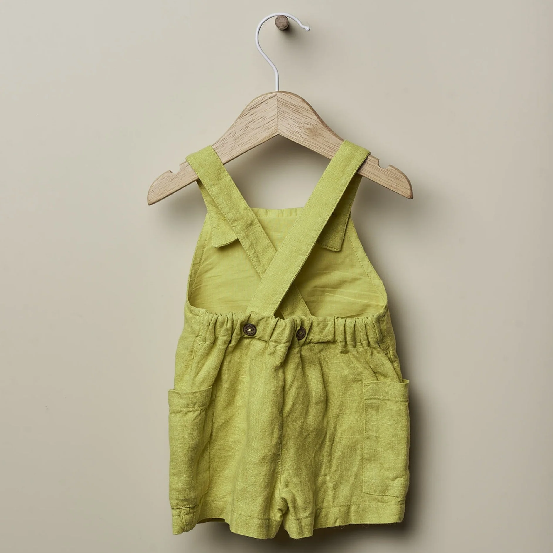 Salopette corta ottima per neonati e bambine, fino a 2 anni. La salopette รจ realizzata in lino in un giallo limone bellissimo ed estivo, abbinala ad una tshirt bianca per un outfit meraviglioso! camicia venduta separatamente