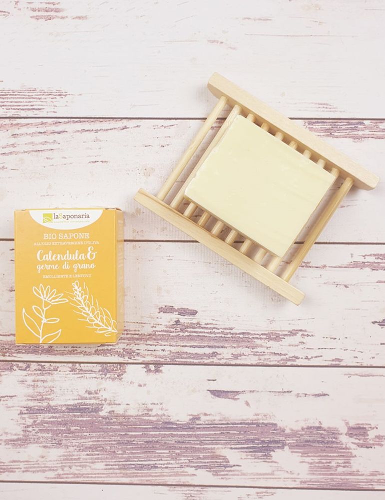 DESCRIZIONE Questo Sapone al taglio è a base di olio extravergine d’oliva prodotto secondo il metodo a freddo, profumato con olio essenziale di petitgrain (fiori d’arancio) e arricchito con estratto di calendula e olio di germe di grano.La calendula ha proprietà idratanti, emollienti e lenitive mentre l’olio di germe di grano è ricco di vitamina […]