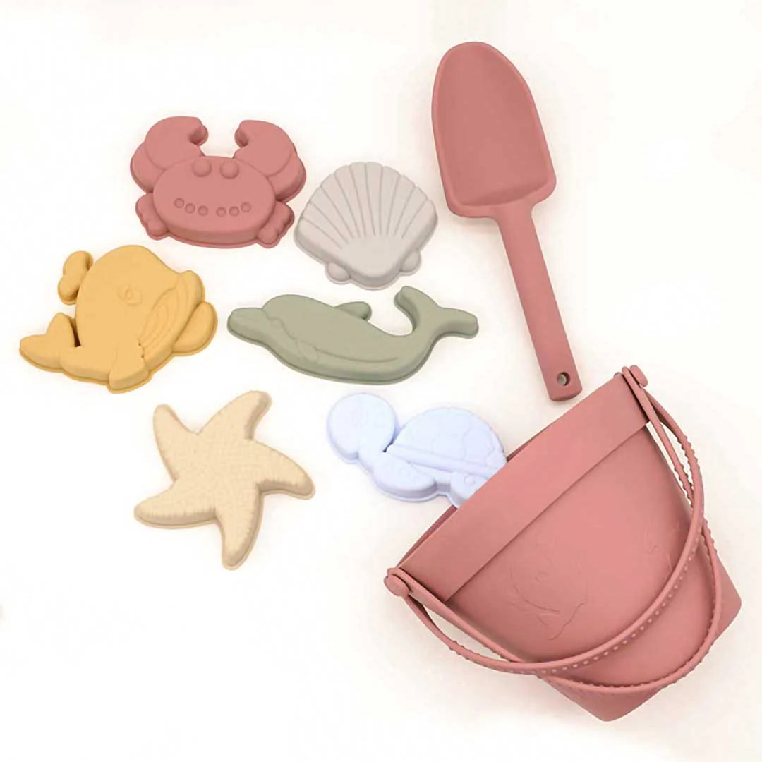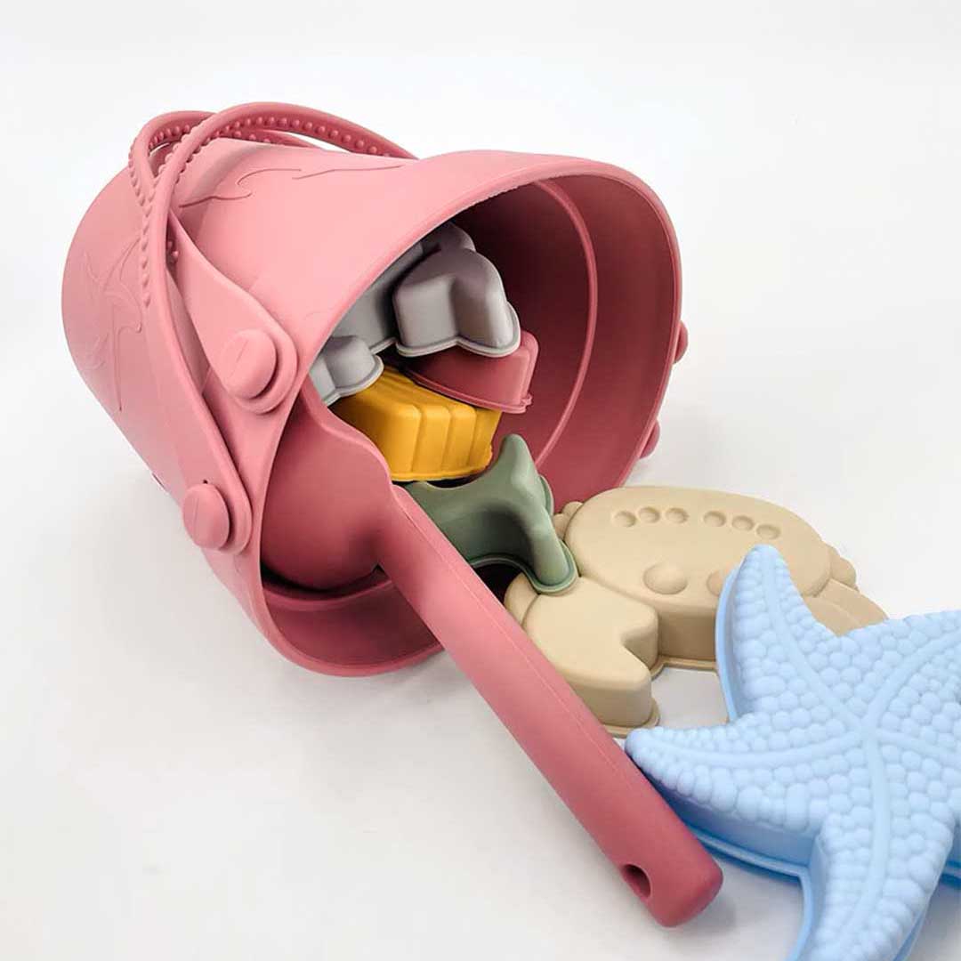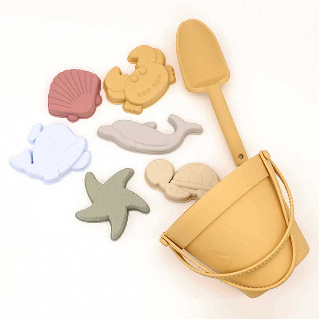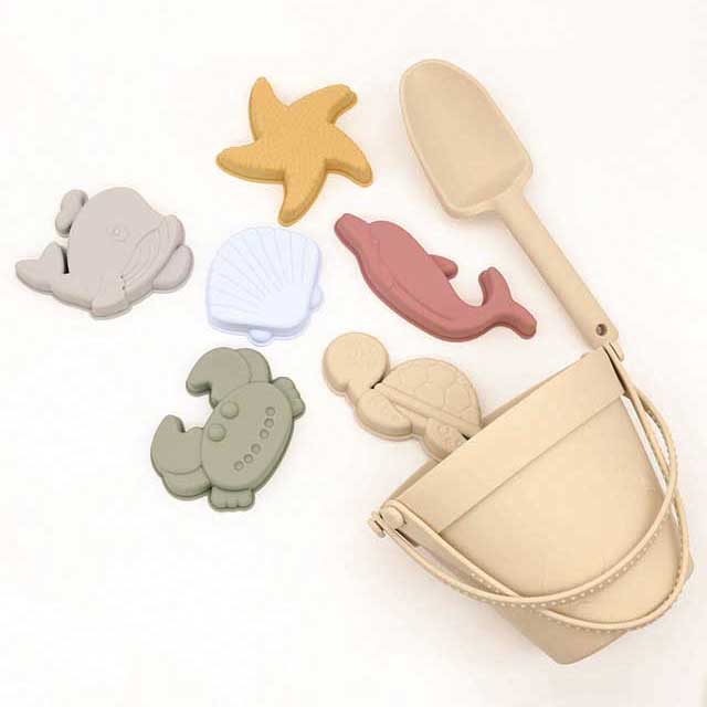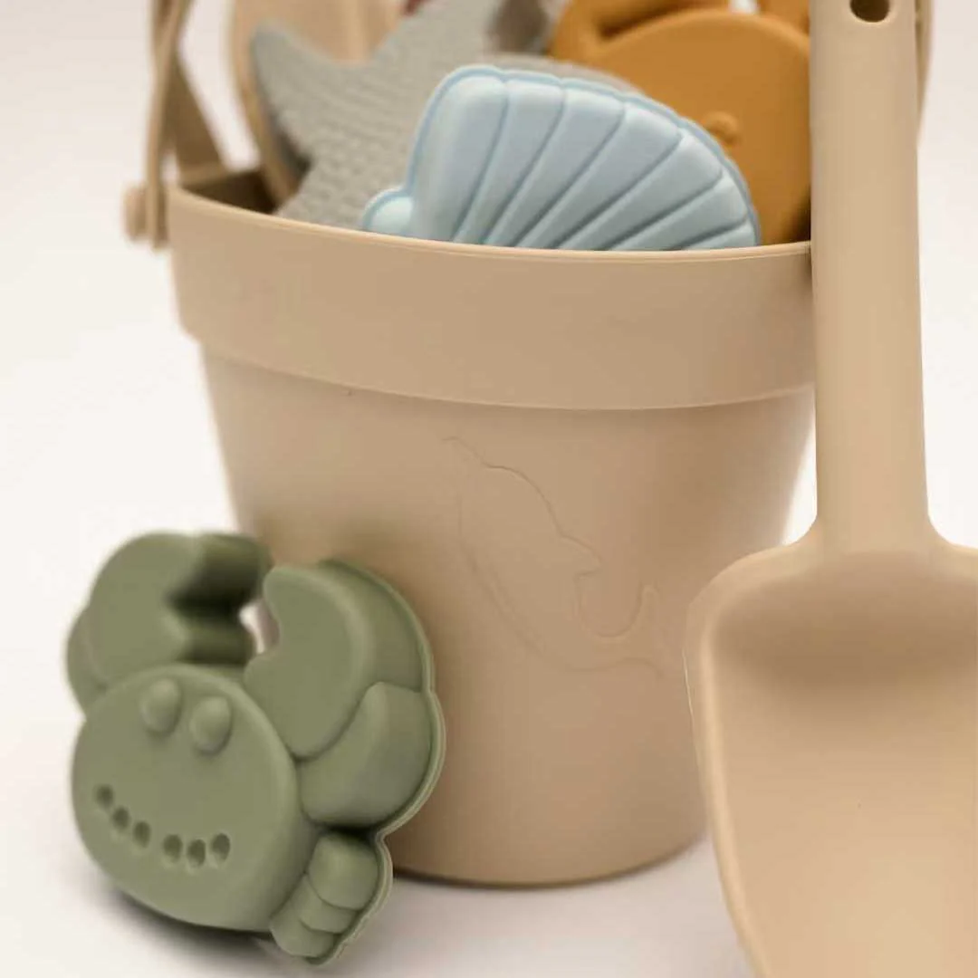 Divertenti e simpatici giocattoli da spiaggia! Il set è composto da un secchiello, una paletta e 6 stampi, Realizzati al 100% in silicone, i set da spiaggia sono super flessibili e resistenti perfetti da riporre in valigia. Il silicone è sicuro anche per il tuo piccolo: è privo di BPA ,pvc e ftalati.