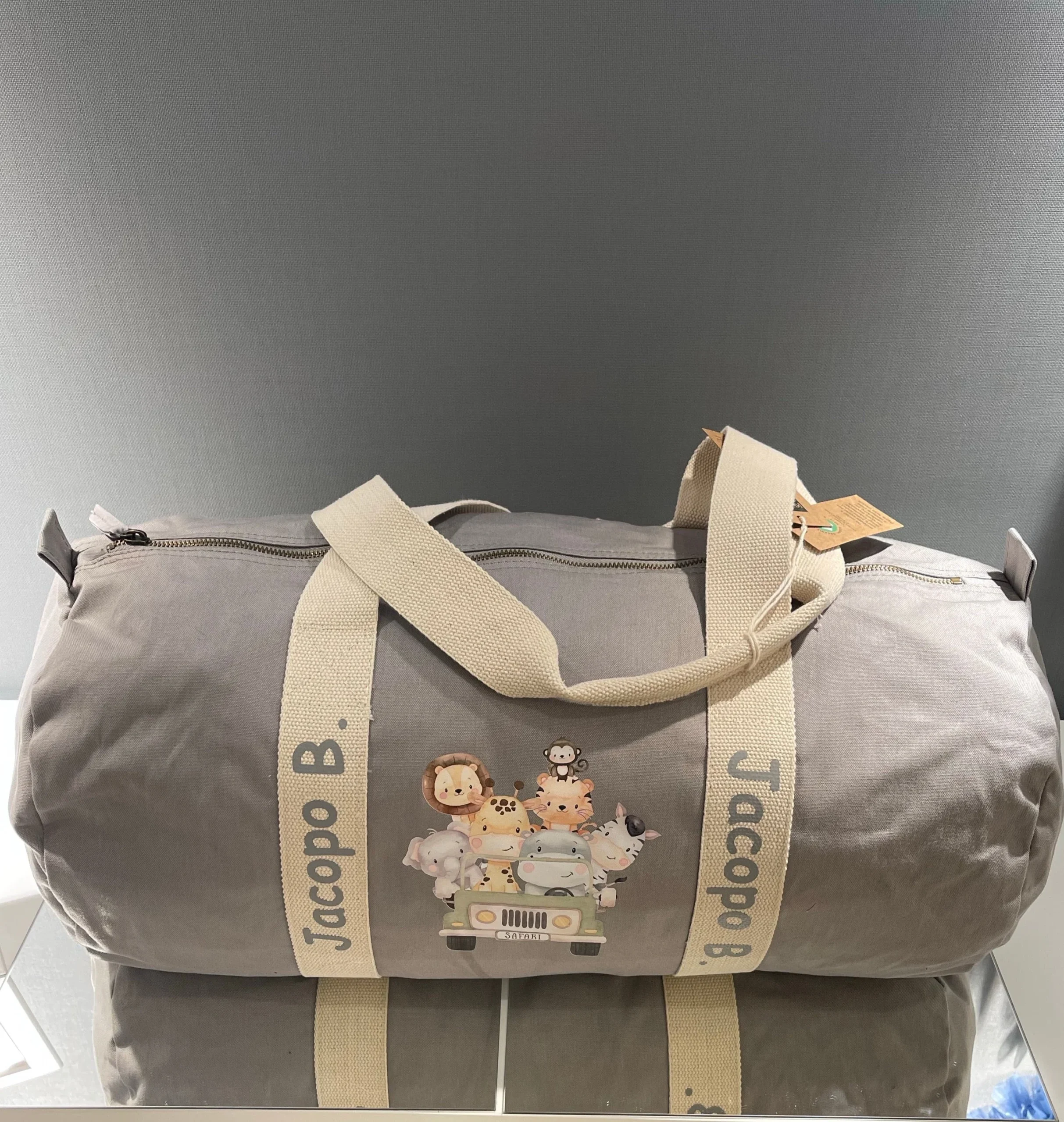 Perfetto per ogni occasione, il nostro borsone è versatile e pratico, adatto per la palestra, i viaggi, l’asilo o come un regalo di nascita speciale.