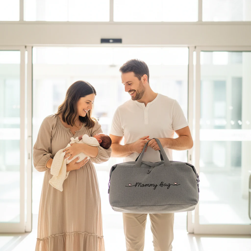 Entra nel mondo di praticità e stile con il nostro borsone “Mommy” in grigio!