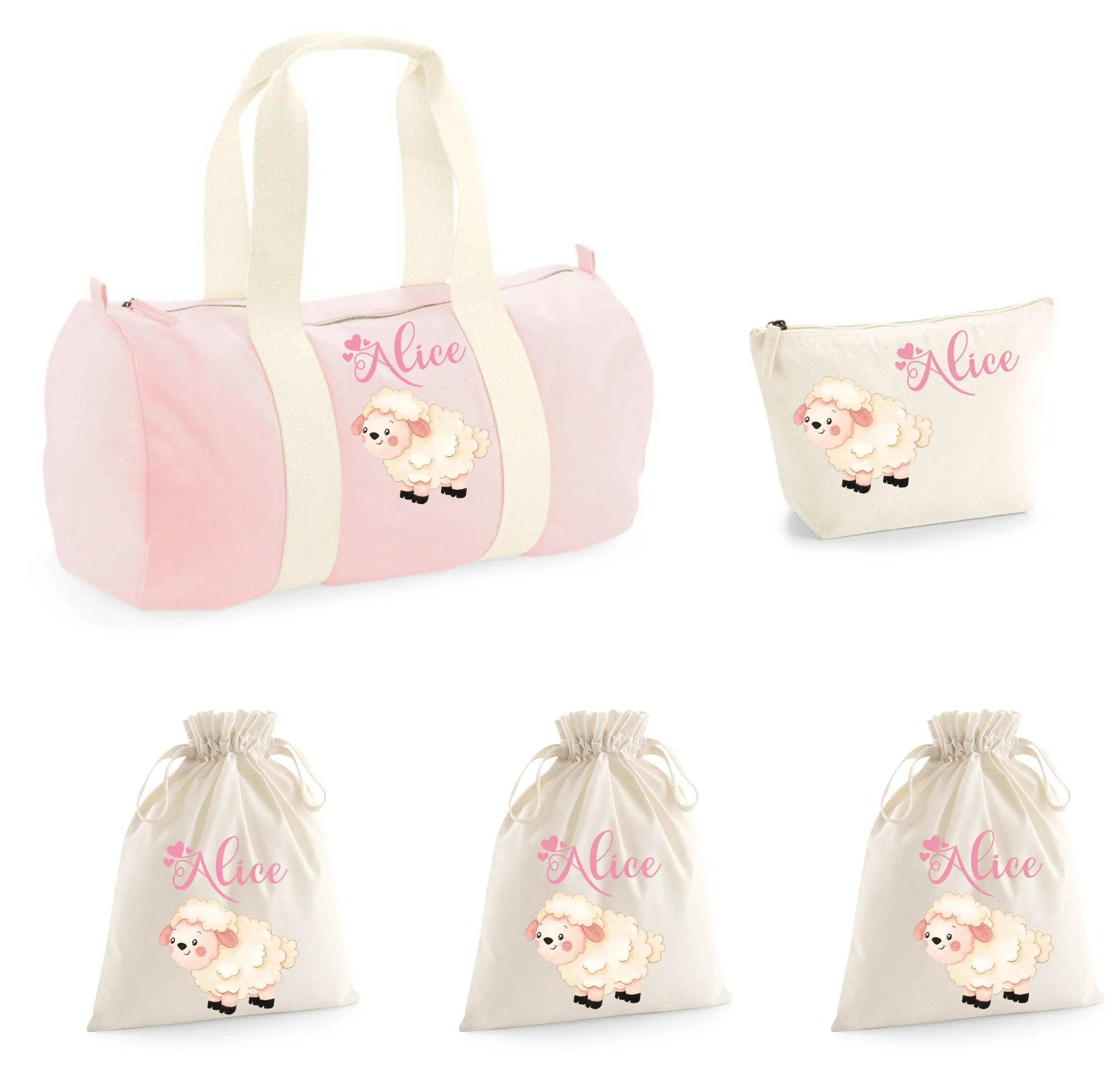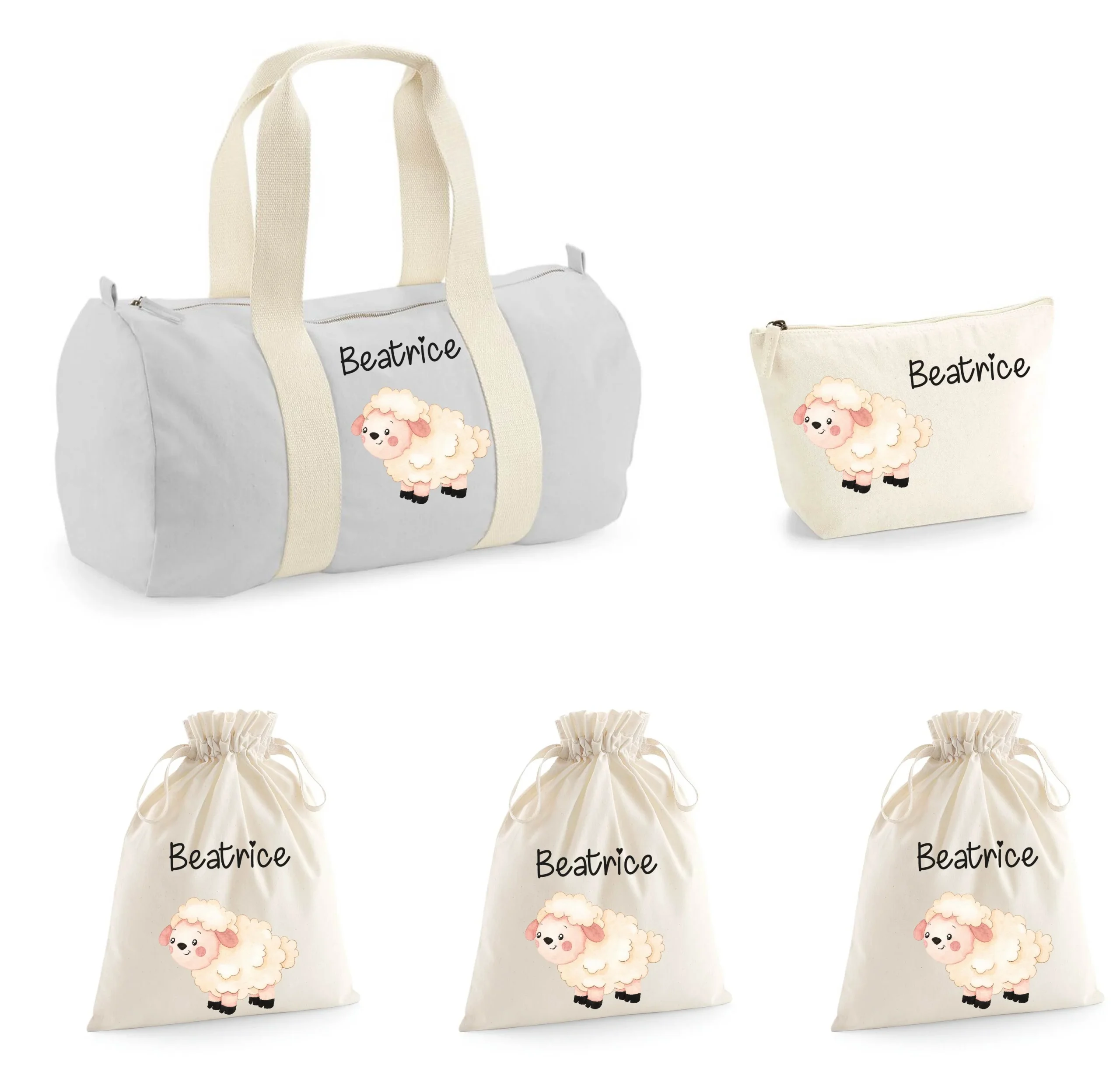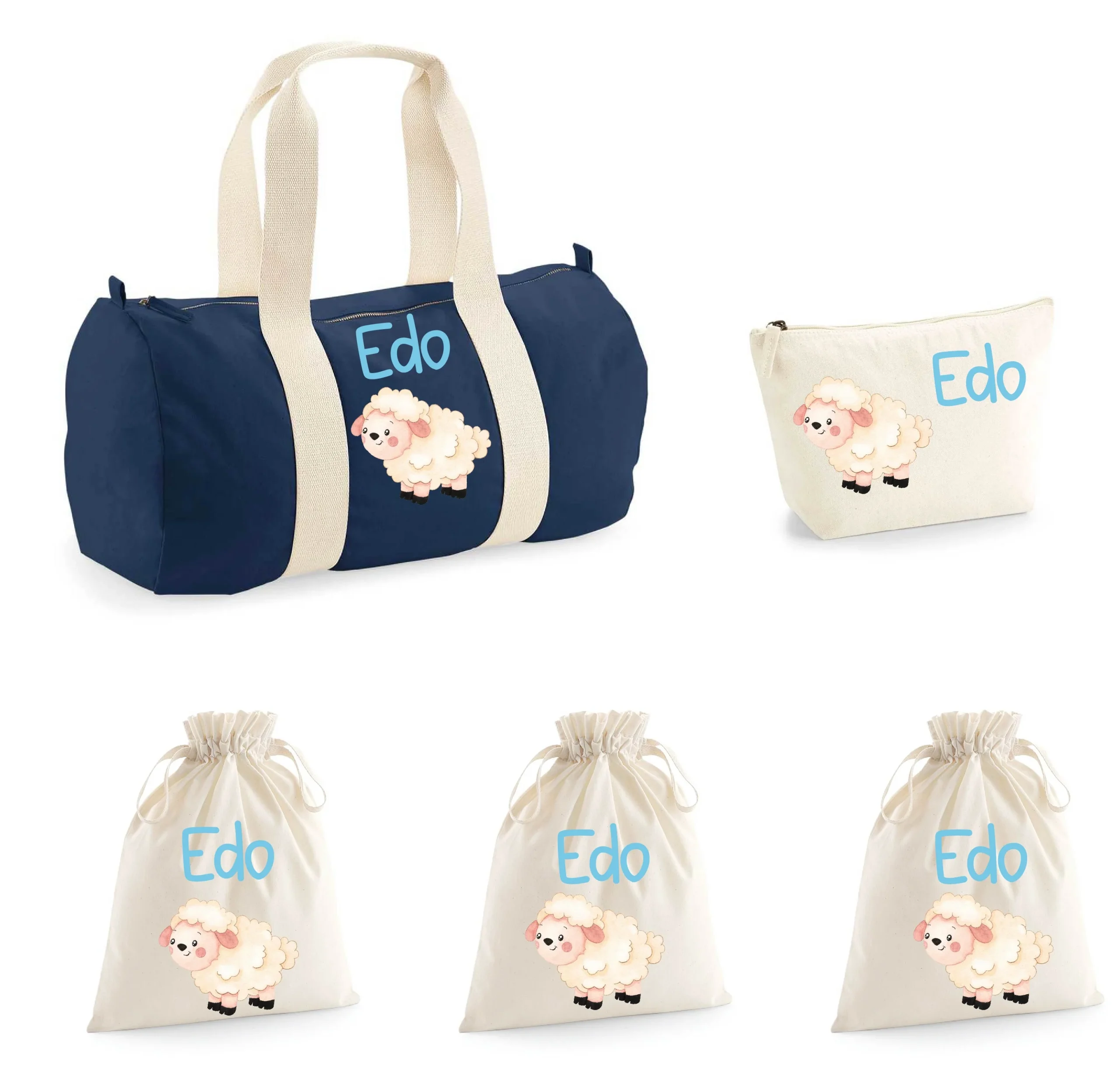 Set Nascita Borsone Baby, 3 sacchi cambi e 1 beauty personalizzati Pecorella