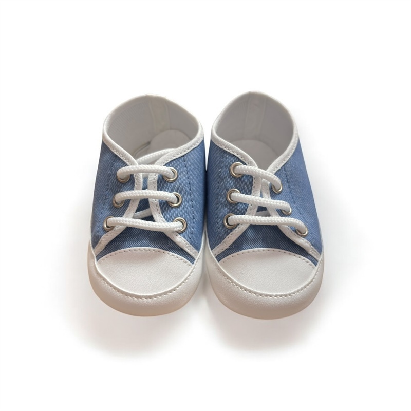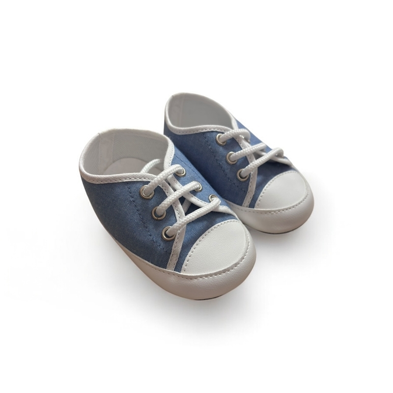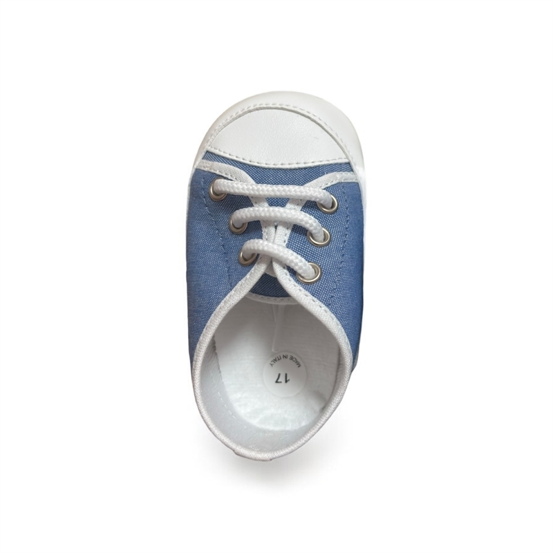 Sneakers da culla, in tela e pelle. Suola traspirante