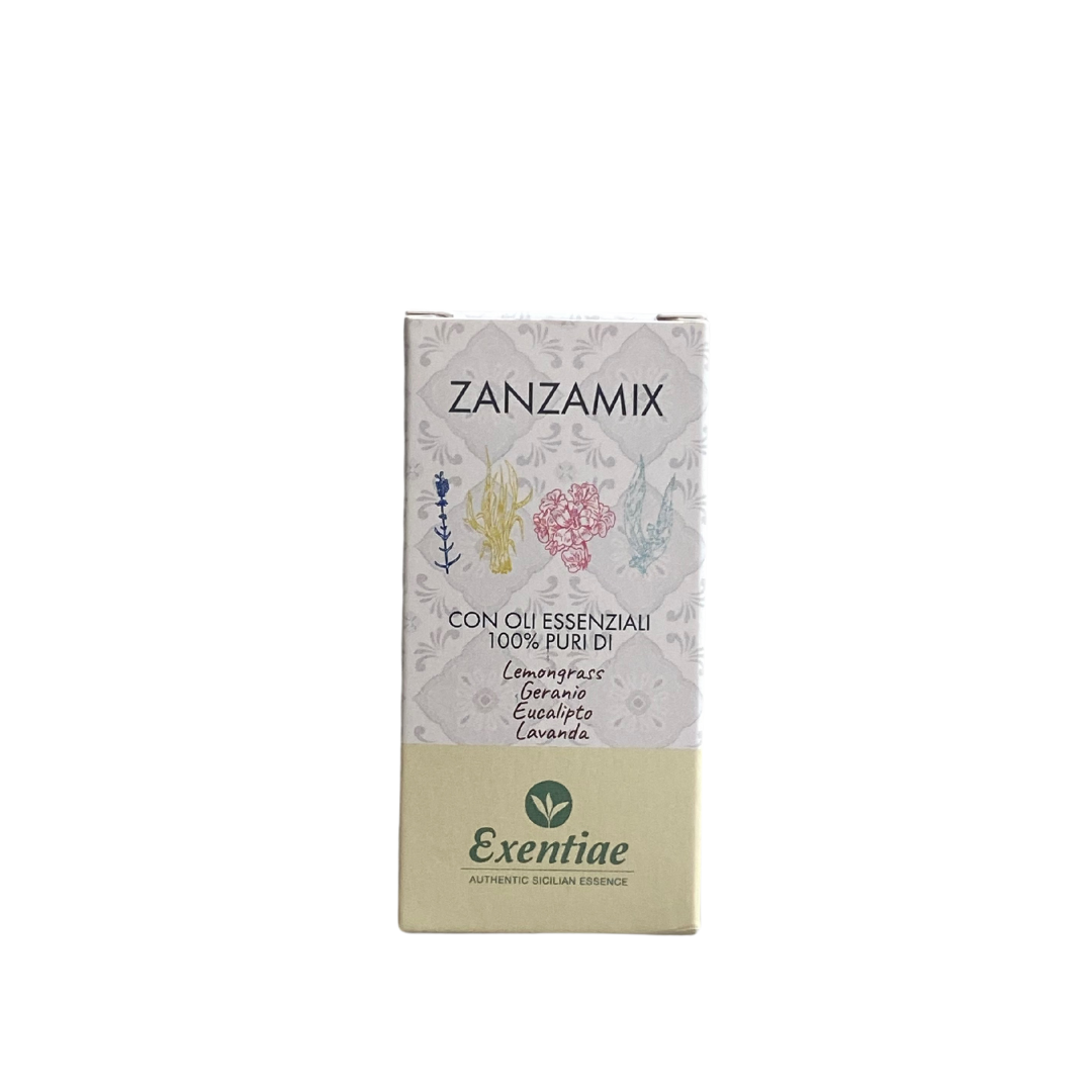 ZANZAMIX è una miscela esclusivamente composta da oli essenziali biologici di alta qualità. La sua formula contiene una combinazione di oli essenziali di geranio, lemongrass, eucalipto e lavanda, selezionati per le loro proprietà naturali sgradite agli insetti, in particolare delle zanzare. Grazie alla sua composizione unica, Zanzamix offre una fragranza piacevole e fresca che non solo profuma l’ambiente, ma agisce anche come deterrente naturale per gli insetti indesiderati.