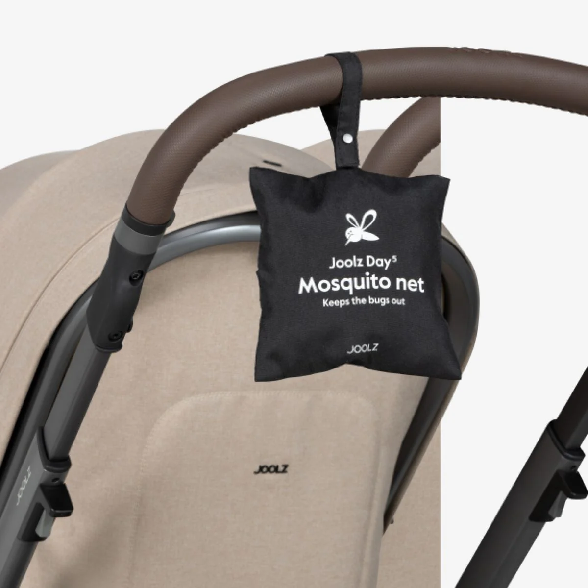 Ingresso vietato agli insetti! La zanzariera è un accessorio indispensabile per le passeggiate durante le belle giornate di sole, e non vuoi che zanzare o altri ospiti indesiderati vi rovinino il divertimento. La rete si fissa su culla, seduta e culla light del passeggino Joolz, creando uno schermo che tiene gli insetti lontani dal piccolo. Bella abbinata al passeggino, grazie alla finissima rete trasparente che lascia entrare l’aria. E, quando non la usi, puoi riporla facilmente nella sua speciale sacca.